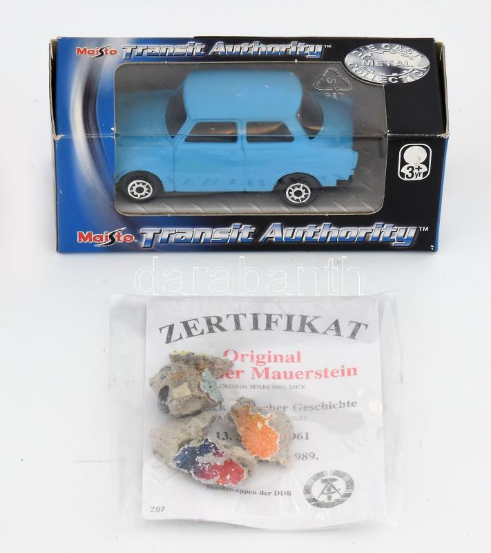 Leírás: Maisto Trabant dobozában + a Berlini fal darabjai certifikáttal
