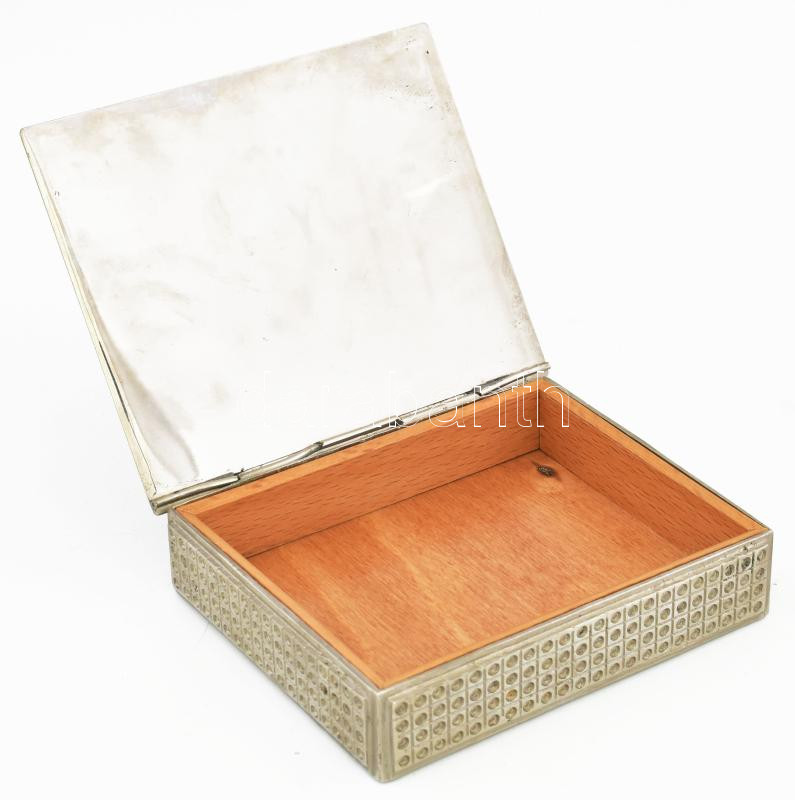 Leírás: Nikkelezett díszdoboz fa betéttel 12x10 cm