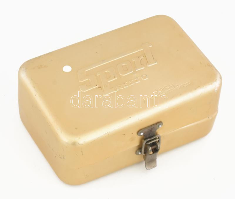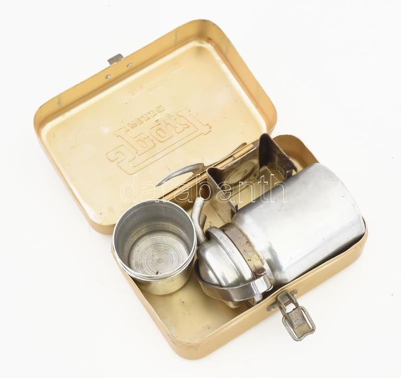 Leírás: Sport Presso retró kávéfőző készlet, kétszemélyes, gyártja: Fémfeldolgozó Vállalat, Szeged fém dobozzal