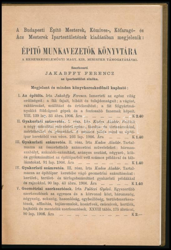 Petrik Albert: A régi Buda-Pest építőművészete III. rész. Építő munkavezetők könyvtára. XXXII. Szerk.: Jakabffy Ferenc. Bp., 1911, Ifj. Nágel Ottó, 103 p. Fekete-fehér fotókkal illusztrálva. Kiadói egészvászon-kötésben, gerincen apró sérüléssel, kissé foltos, kissé kopott borítóval.