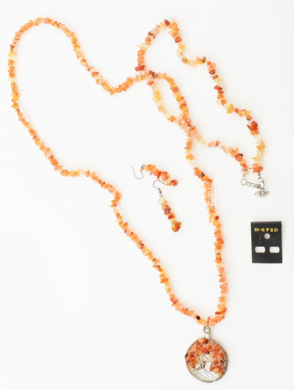 Leírás: Karneol nyaklánc, életfa medálos nyaklánc és fülbevaló pár