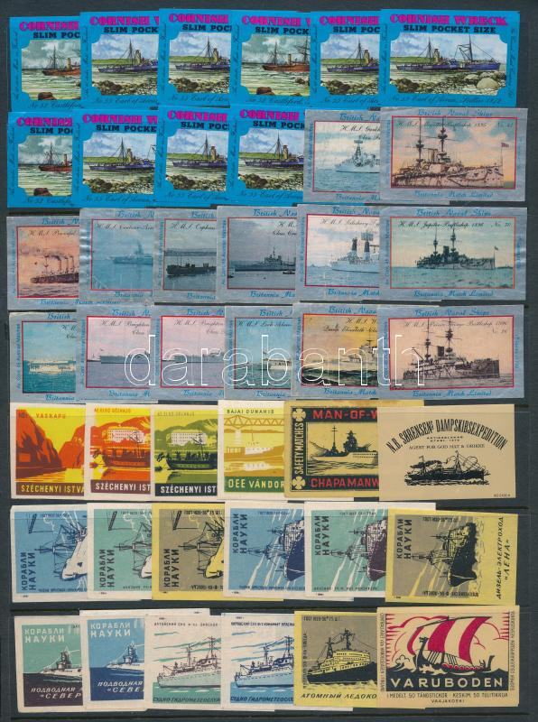 Leírás: 42 db hajós gyufacímke: hadihajók, jégtörők, folyami hajók, A4-es berakólapon