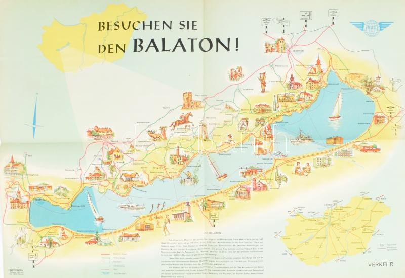 Leírás: cca 1980 Balaton grafikus térképe német nyelven Cartographia 57x39 cm