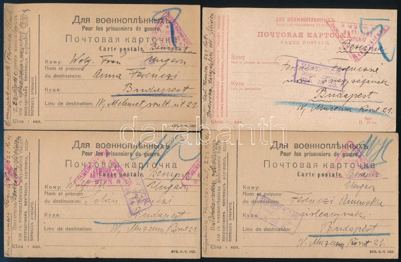 Leírás: 1916-1917 4 db hadifogoly levelezőlap német és magyar nyelven írva