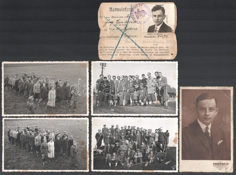 Leírás: Davidovics György matematikus igazolványa, fotója és 4 db munkaszolgálatos fotólap