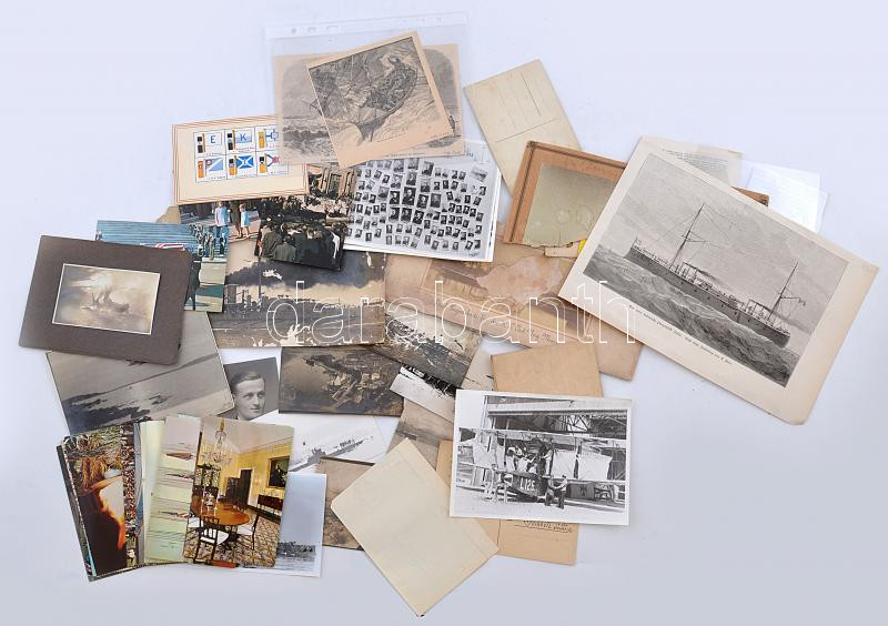 Leírás: Hadihajózással, hajózással kapcsolatos képek, fotók tételben. I. világháborús érdekes fotók, régebbi metszetek, modern reprodukciók vegyesen