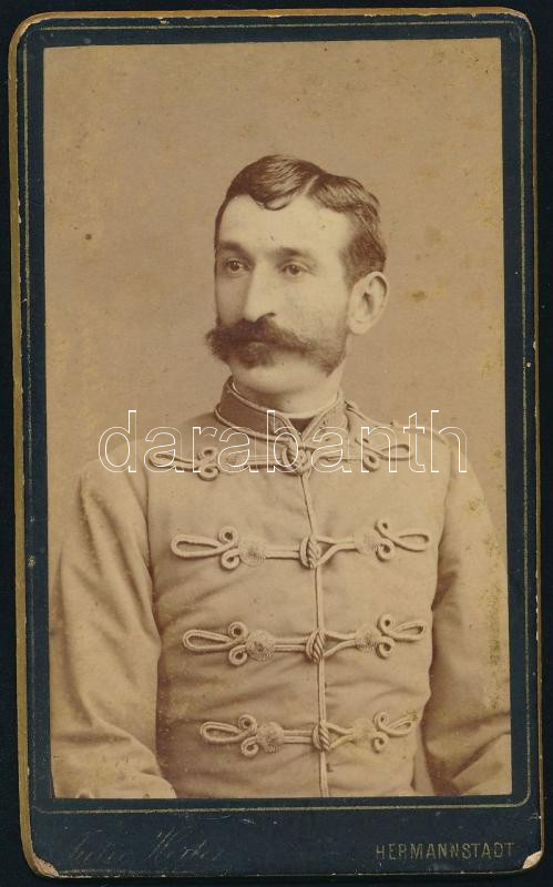 Leírás: cca 1880 Huszártiszt fényképe, keményhátú fotó Julie Herter nagyszebeni műterméből, 10,5×6,5 cm