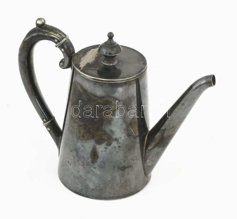 Leírás: Antik ezüstözött alpakka tejkiöntő, jelzett, kopással, m: 12 cm