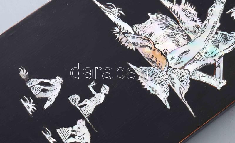 Leírás: Japán fali dísz. Gyöngyház berakásos lakkozott fa. 35x13 cm