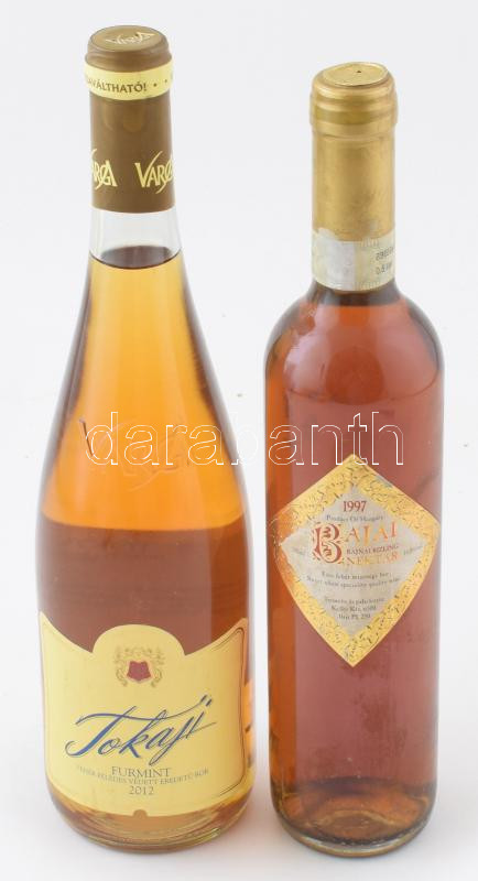 Leírás: 1997 Bajai Nektár Rajnai Rizling, bontatlan palack édes fehérbor, 14%, 0,5l + 2012 Varga Tokaji Furmint, bontatlan palack édes fehérbor, 12%, 0,75l