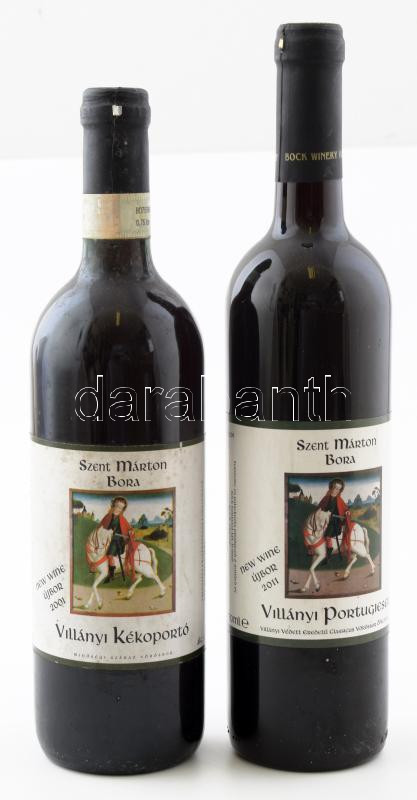 2001-2011 Bock József Szent Márton Bora Villányi Portugieser válogatás, 2 palack (2001, és 2011-es évjáratok), pincében szakszerűen tárolt, bontatlan palack száraz vörösbor, 12,5%, 0,75 l.