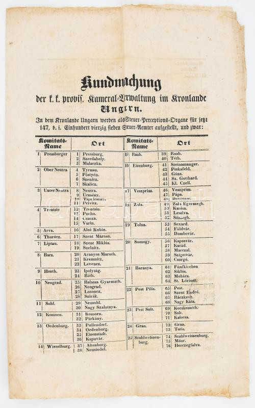 1851 Buda, német nyelvű adóhirdetmény https://www.darabanth.com/hu/469-Gyorsarveres/469.0/Mutargy-papirregiseg-egyeb/Nyomtatvanyok~1000014/1851-Buda-nemet-nyelvu-adohirdetmeny~II3171585