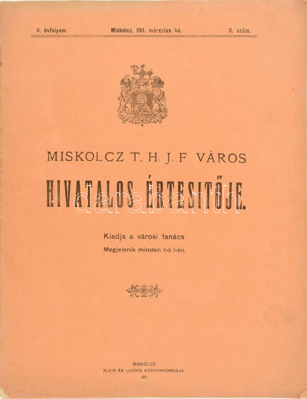 1911 Miskolcz t. h. j. f város hivatalos értesítője 44p. https://www.darabanth.com/hu/469-Gyorsarveres/469.0/Mutargy-papirregiseg-egyeb/Nyomtatvanyok~1000014/1911-Miskolcz-t-h-j-f-varos-hivatalos-ertesitoje-44p~II3123211