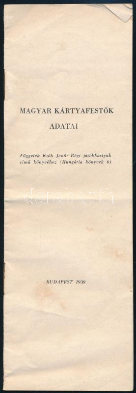 Leírás: 1939 Magyar kártyafestők adatai 8p kis nyomtatvány, hajtva