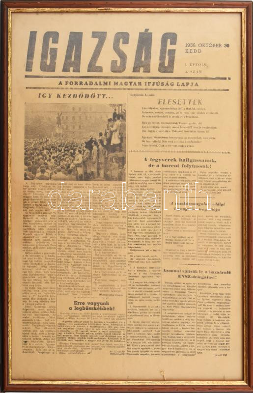 1956 Forradalmi újságok gyűjteménye. Egy darab üvegezett keretben, hoz... https://www.darabanth.com/hu/469-Gyorsarveres/469.0/Mutargy-papirregiseg-egyeb/Nyomtatvanyok~1000014/1956-Forradalmi-ujsagok-gyujtemenye-Egy-darab-uvegezett-keretben-hozza-meg-11-darab-Mind-a~II3092689