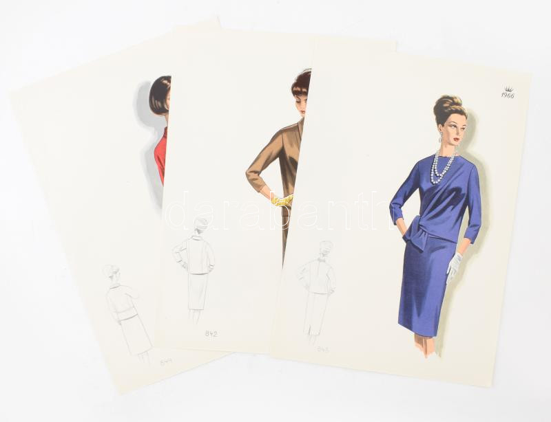 Leírás: 1966 3 db vintage női divatkép, ofszet nyomat, papír, 34x23,5 cm