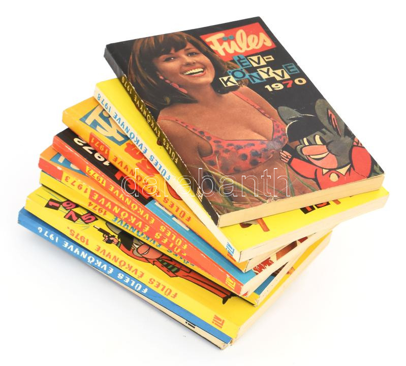 Leírás: 1970-1978 Füles évkönyve, 9 db, kiadói papírkötésben, túlnyomórészt jó állapotban