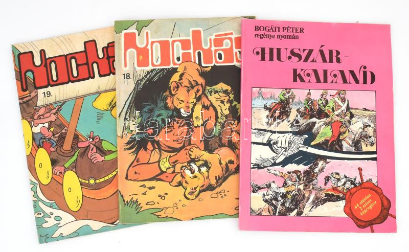 3 db képregény: Huszárkaland, Bogáti Péter regénye nyomán írta: Cs. Horváth Tibor, rajzolta: Zórád Ernő, 64 p. + Kockás 18. és 19. szám, benne Bambi, Pif, stb.