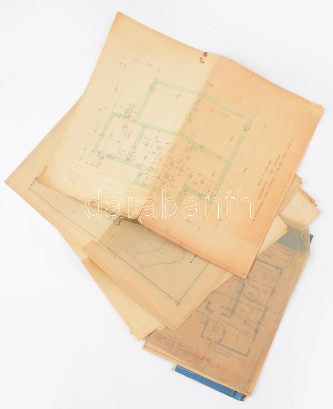Leírás: cca 10 darab régi tervrajz klf méretben és állapotban