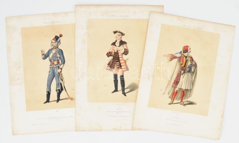 cca 1890-1900 Théatre de l'Opéra, 3 db francia színházi témájú illusztráció. Színes litográfia, papír, jelzett (Lith. Godard, Paris). Foltos lapok, lapméret: 28x21 cm körül