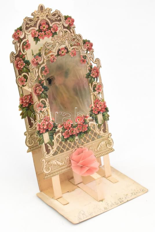 Leírás: cca 1900 csipke litho térbeli üdvözlőkártya 9x19 cm Kis sérüléssel