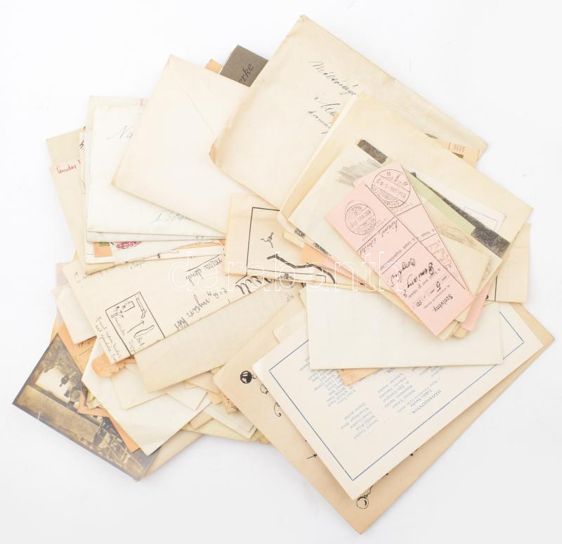 Leírás: cca 1910-1940 Vegyes nyomtatványok, főleg meghívók, néhány okmány, fotó,