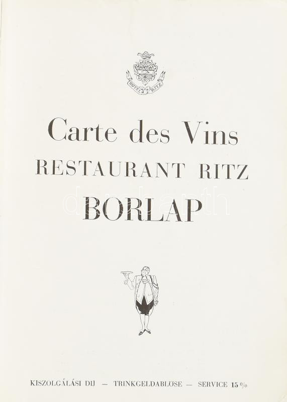 Leírás: cca 1940 Hotel Ritz Dunapalota borlap 8 p. zsinórfűzött borítóval