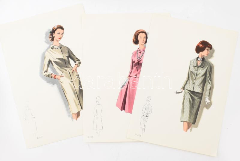 Leírás: cca 1960 3 db vintage női divatkép, ofszet nyomat, papír, 34x24 cm
