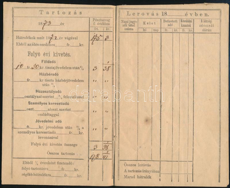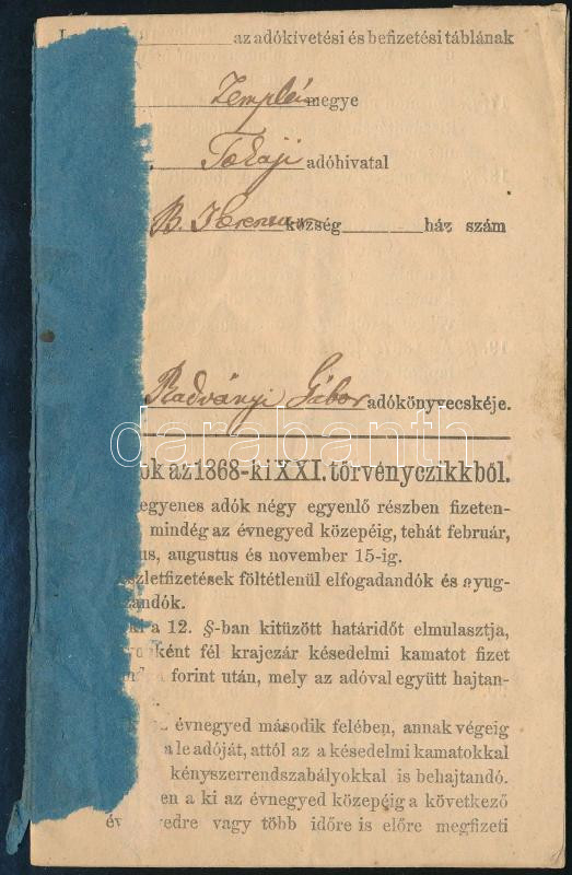 1868 Tokaj környéki községi ingatlan adókönyvecskéje. https://www.darabanth.com/hu/469-Gyorsarveres/469.0/Mutargy-papirregiseg-egyeb/Okmanyok~500020/1868-Tokaj-kornyeki-kozsegi-ingatlan-adokonyvecskeje~II3091651
