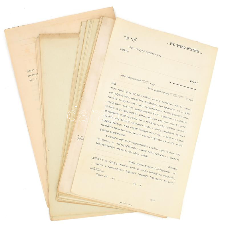cca 1900 Trencsén vármegyei tisztviselő hivatalos iratainak korabeli m... https://www.darabanth.com/hu/469-Gyorsarveres/469.0/Mutargy-papirregiseg-egyeb/Okmanyok~500020/cca-1900-Trencsen-varmegyei-tisztviselo-hivatalos-iratainak-korabeli-masolatai-okmanybelyegekk~II3173678