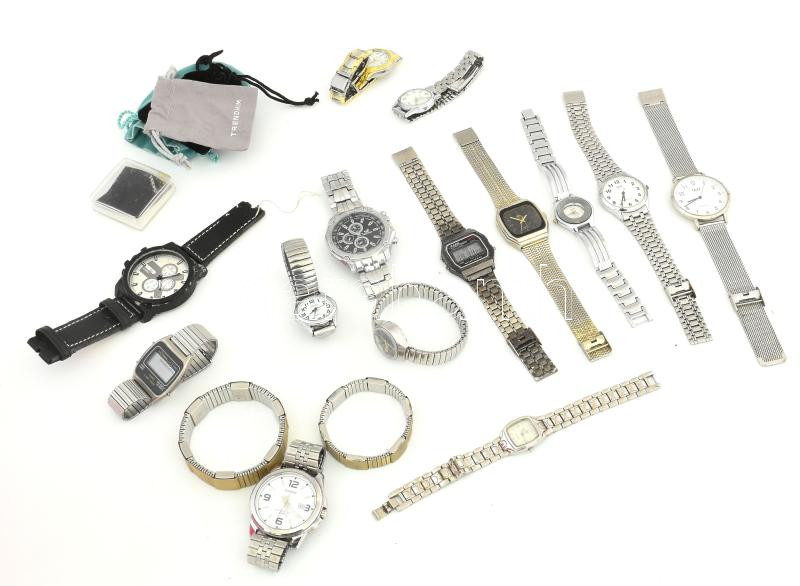 Leírás: Vegyes óra tétel: Casio, Q&Q, Japona. Nagyrészt műkődőképesek, sok analóg elemmel is.
