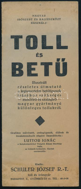 Leírás: cca 1920 Toll és Betű, a Schuler József Rt. toll és iróngyár ismertető füzete magyar termék propagandával, jó állapotban, 17p