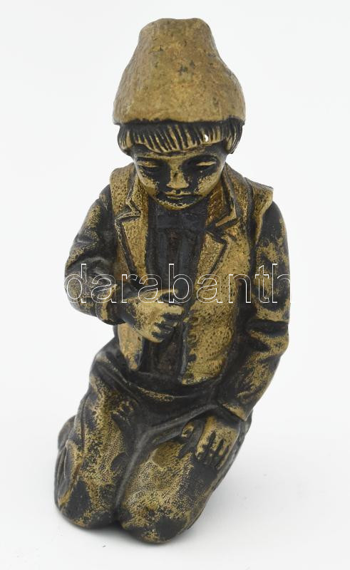 Leírás: Térdelő fiú bronz szobor, 8,5 cm