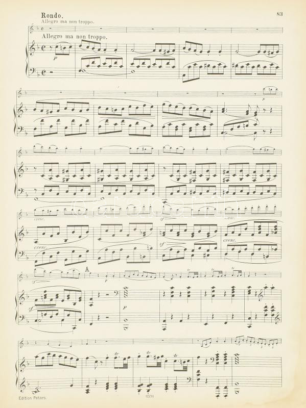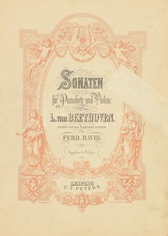 Beethoven, Ludwig van: Sonaten für Pianoforte und Violine von - - . Revidirt und mit Fingersatz versehen von Ferd. David. Leipzig, é.n., C. F. Peters, 205 p. Átkötött egészvászon-kötésben, sérült borítóval, sérült, javított címlappal, lapszéli ázásnyomokkal.