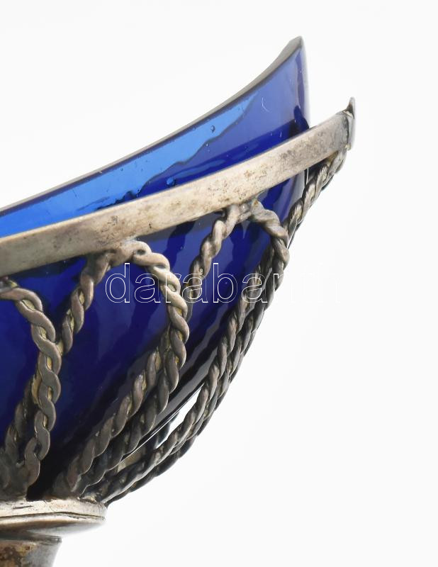 Leírás: Ezüst (Ag) Empire antik csónak alakú fűszertartó, kék üvegbetéttel, jelzett, nettó: 53,7 g