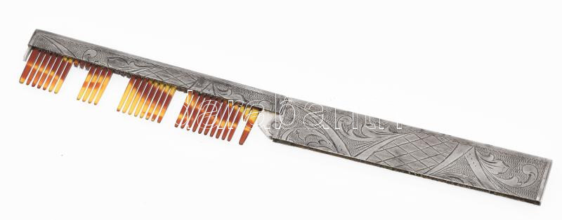 Leírás: Ezüst (Ag) fésű törött szaru fogakkal. Jelzett br 28 g 18 cm
