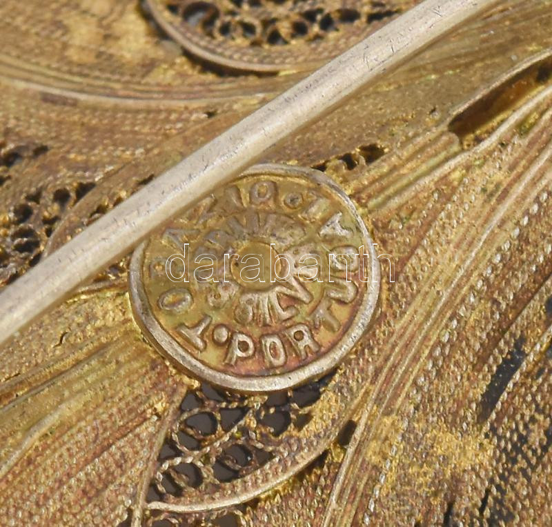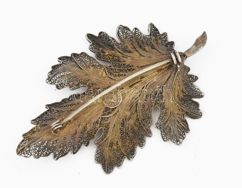 Leírás: Ezüst (Ag) filigrán levél bross, jelzett, bruttó: 10g