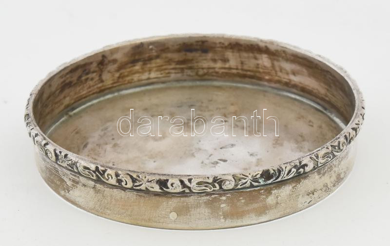 Leírás: Ezüst (Ag) italosüveg-tartó alátét, jelzett, d: 8 cm, nettó: 72g