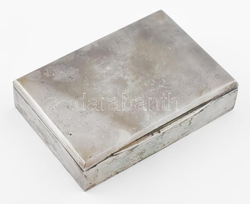 Ezüst(Ag) doboz fa betéttel, jelzett, 15,5×11×3,5 cm, bruttó: 395,3 g https://www.darabanth.com/hu/469-Gyorsarveres/469.0/Nemesfem-disztargyak-ekszerek-dragakovek/Nemesfem-disztargyak-ekszerek-dragakovek~1000036/EzustAg-doboz-fa-betettel-jelzett-15-5C39711C3973-5-cm-brutto-395-3-g~II3122621