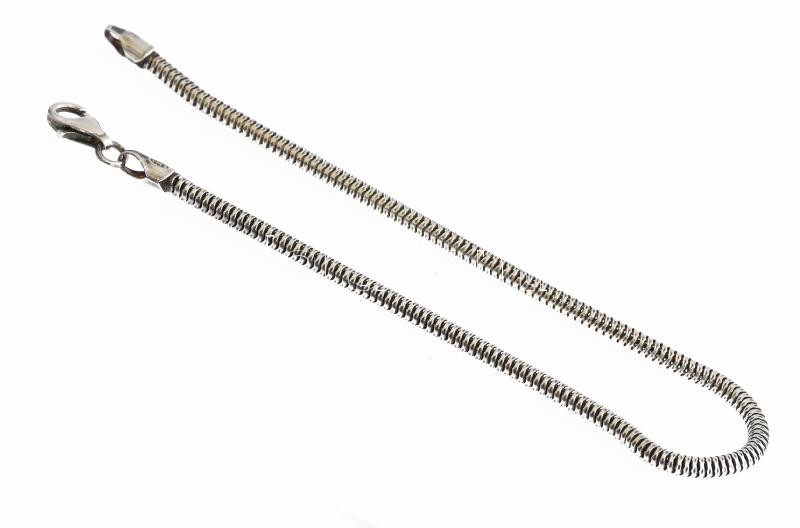 Ezüst(Ag) hengeres kígyó karkötő, jelzett, h: 19 cm, nettó: 4,3 g https://www.darabanth.com/hu/469-Gyorsarveres/469.0/Nemesfem-disztargyak-ekszerek-dragakovek/Nemesfem-disztargyak-ekszerek-dragakovek~1000036/EzustAg-hengeres-kigyo-karkoto-jelzett-h-19-cm-netto-4-3-g~II3170492