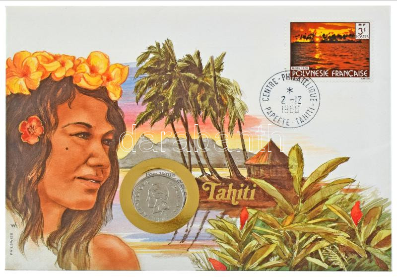 Francia Polinézia 1984. 10Fr Ni "Tahiti" feliratú felbélyegzett borítékban, bélyegzéssel, német nyelvű leírással T:UNC French Polynesia 1984. 10 Francs Ni in "Tahiti" envelope with stamp, cancellation and a prospectus in german C:UNC