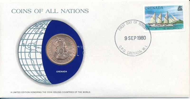 Grenada 1965. 2c "Nemzetek pénzérméi" felbélyegzett borítékban, bélyegzéssel T:AU