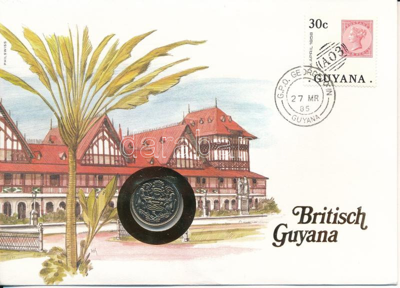 Guyana 1985. 25c felbélyegzett borítékban, bélyegzéssel T:UNC Guyana 1... https://www.darabanth.com/hu/469-Gyorsarveres/469.0/Numizmatika/Ermes-es-bankjegyes-boritekok~2000005/Guyana-1985-25c-felbelyegzett-boritekban-belyegzessel-TUNC-Guyana-1985-25-Cents-in-envelope~II3141502