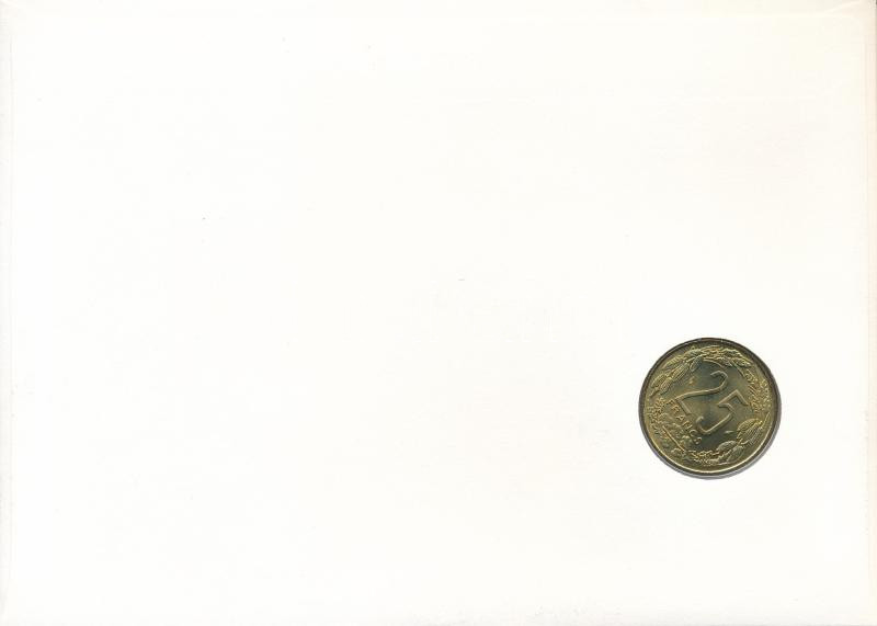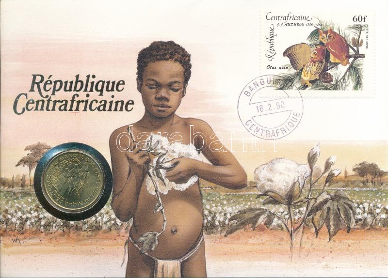 Közép-afrikai Államok 1984. 25Fr Al-bronz felbélyegzett borítékban, bélyegzéssel, német nyelvű leírással T:UNC Central African States 1984. 25 Francs Al-bronze in envelope with stamp and cancellation, with German description C:UNC