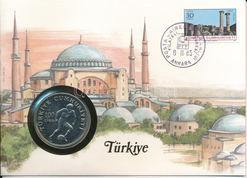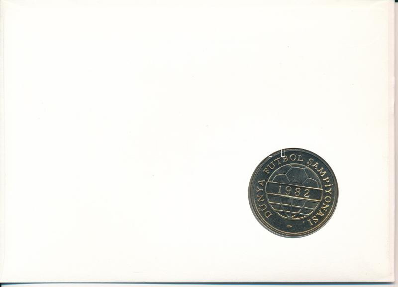 Törökország 1982. 100L Cu-Ni "1982 - Labdarúgó Világbajnokság" forgalomba nem került emlékkiadás felbélyegzett borítékban, bélyegzéssel, német nyelvű leírással T:UNC Turkey 1982. 100 Lira Cu-Ni "1982 World Cup" non-circulating commemorative coin in envelope with stamp, cancellation, and a description in german C:UNC Krause KM#9