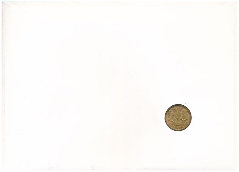 Uzbekistan in envelope with stamp, cancellation and a prospectus in german, in it Russia 1992. 1 Ruble Cu-Ni C:UNC