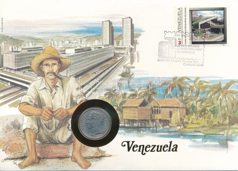 Venezuela 1967. 1B acél felbélyegzett borítékban, alkalmi bélyegzéssel német nyelvű leírással T:UNC Venezuela 1967. 1 Bolívar steel in envelope with stamp, cancellation, German description C:UNC