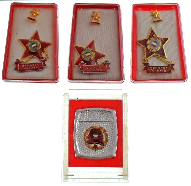 1970-1980. Szocialista jelvény tétel, benne: 40db "Szocialista Brigád" mind műanyag dobozában, az egyik miniatűr nélkül + 3db "Kiváló Dolgozó" műanyag dobozában, miniatűrrel T:AU,XF