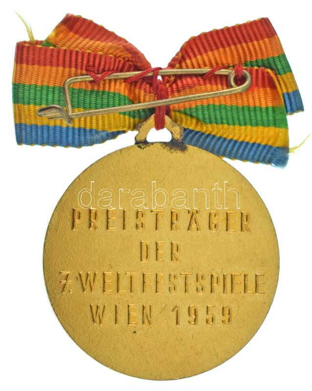 Ausztria 1959. "A 7. Világifjúsági és diáktalálkozó" aranyozott fém jelvény mellszalagon T:XF ph