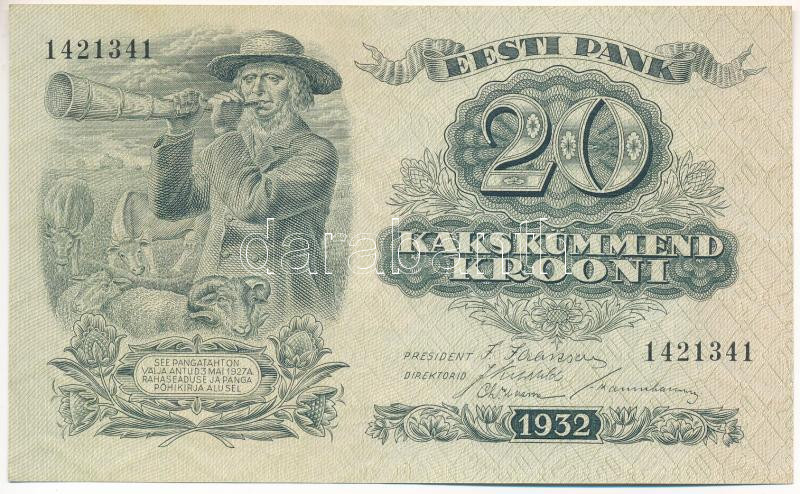 Kraus... https://www.darabanth.com/hu/469-Gyorsarveres/469.0/Numizmatika/Kulfoldi-bankjegyek~2000015/Esztorszag-1932-20K-TUNC-AU-Estonia-1932-20-Krooni-CUNC-AU-Krause-P2364~II3148204